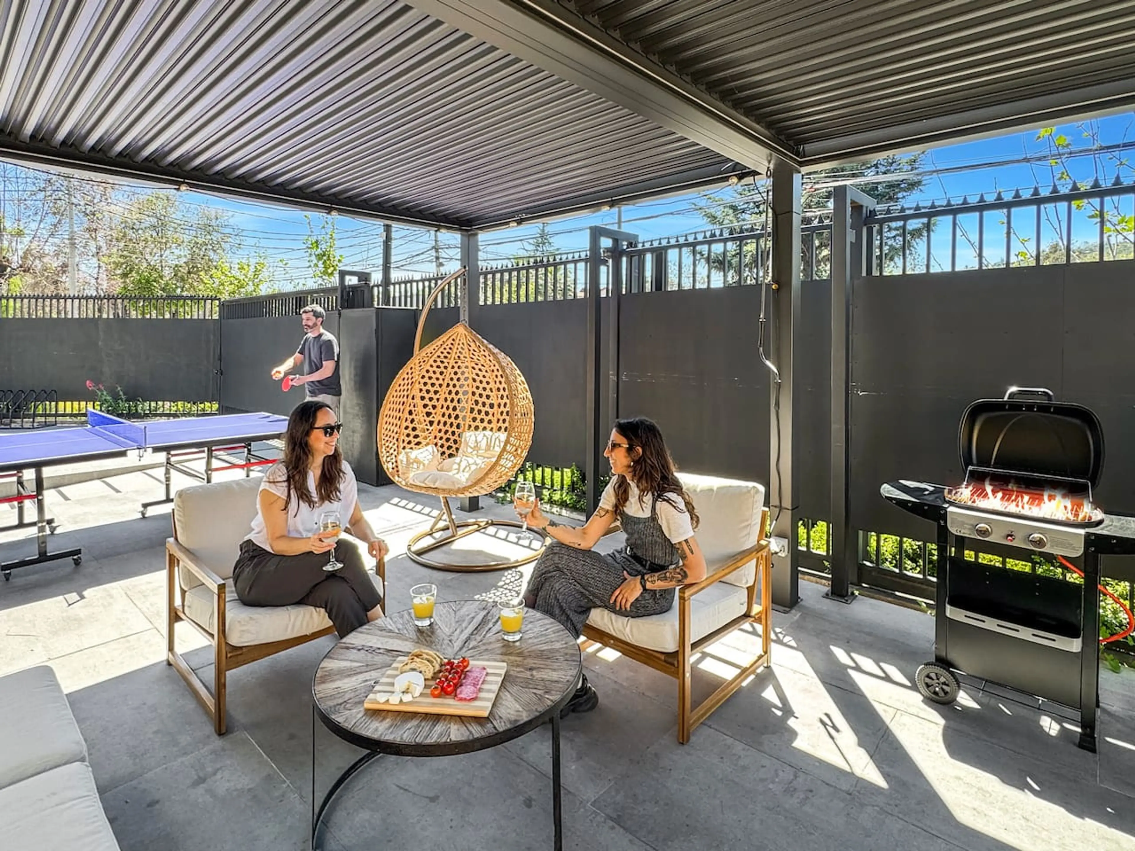¿Buscas estilo, descanso y buena ubicación? Este cálido estudio tiene todo para una estadía inolvidable en Santiago. Está full equipado para 2 personas: ♨️ Aire acondicionado 🍴 Cocina full equipada 💻 Excelente Wifi ✨ Decoración boutique 🥩 Parrilla a gas 🏓 Mesa de ping pong 🗻 Vista a la Cordil...